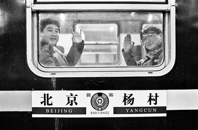 相比平時的車廂,最后一趟6451次多了不少車迷走來走去,有人忙著補票,有人忙著拍照。列車走行37分鐘到達黃村車站,北青報記者隨著二三十名乘客下車。列車停靠3分鐘,又有百余名乘客陸續(xù)上車,將5節(jié)車廂幾乎坐滿。一聲清脆的鳴笛后,6451次緩緩消失在了夜幕中。今天上午,6452次將從楊村開回北京站,這對老綠皮車將宣告停運。
