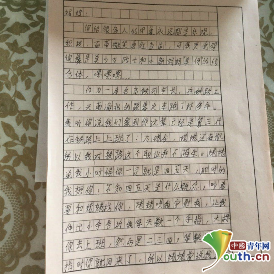 一年一度的春運又開始了,13歲的女孩小嘉琪早已習慣了媽媽不能在家的春節(jié)。小嘉琪的媽媽是哈大高鐵車隊的列車長。今年她給媽媽寫了一封信,這封信里有埋怨、有理解、更有女兒對媽媽的愛……不禁讓人淚目。