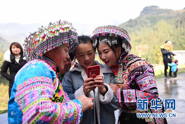 四川省敘永縣后山鎮(zhèn)三斗米村婦女在查看手機(jī)(1月16日攝)。新華社記者 謝佼 攝