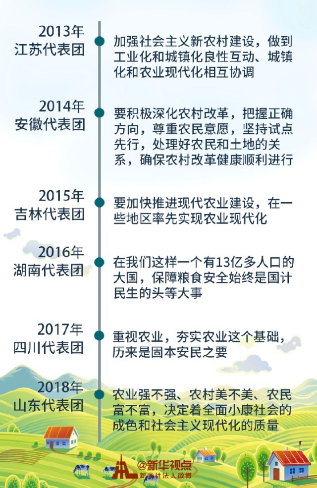 黨的十八大以來,每年全國(guó)兩會(huì)期間下團(tuán)參加審議,習(xí)近平總書記都會(huì)談到“三農(nóng)”問題。語(yǔ)重心長(zhǎng),充滿深情。