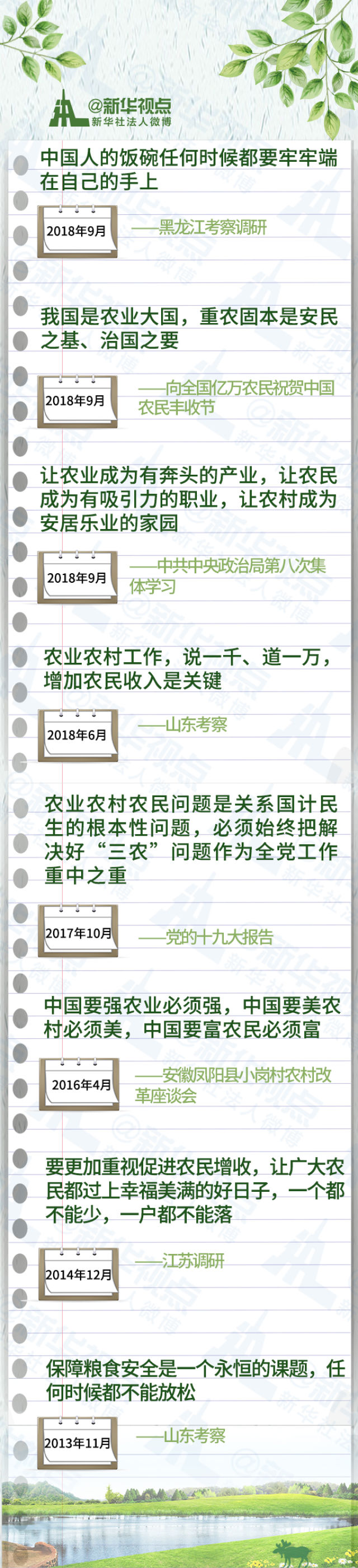 總書記情系“三農(nóng)”,無(wú)論是國(guó)內(nèi)考察調(diào)研,還是集體學(xué)習(xí)或出席會(huì)議,都對(duì)“三農(nóng)”工作提出過明確要求。