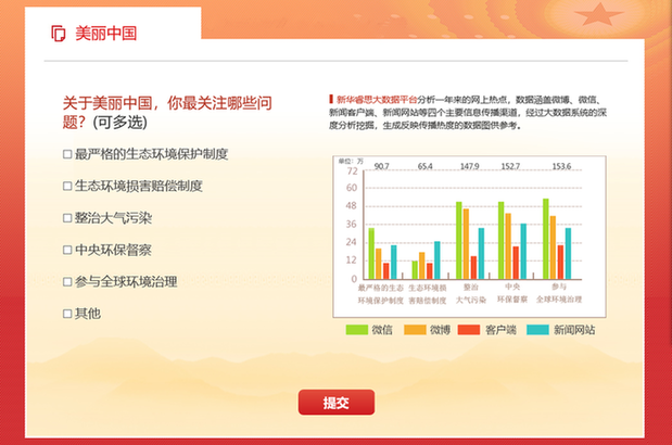 綠水青山是你我都關(guān)注的熱點。在新華網(wǎng)推出的2019全國兩會熱點調(diào)查中,新華睿思大數(shù)據(jù)通過監(jiān)測新聞網(wǎng)站、論壇、微信、微博、APP、平媒6個信源,分析結(jié)果顯示,全國兩會開幕以來,關(guān)于生態(tài)環(huán)境的話題共832 4987個。