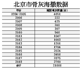 北青報記者了解到,從2014年至2016年,本市骨灰海葬量每年以20%左右的幅度增長。2018年,骨灰海葬占總安葬量比例達到3%。八寶山禮儀公司副總經(jīng)理王德東表示,去年本市撒海的骨灰有2700多份,計劃今年實現(xiàn)3000份。