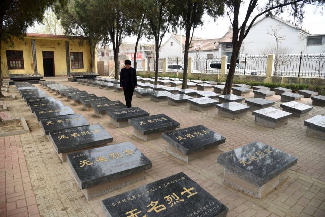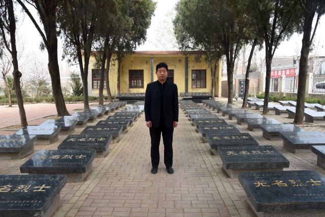 3月20日,張景憲在張和莊烈士陵園內。