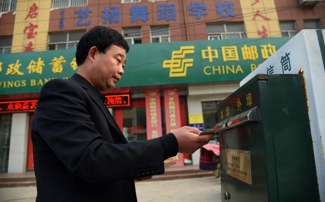 3月20日,張景憲將新一批寫好的信件投到信箱里準備寄出。