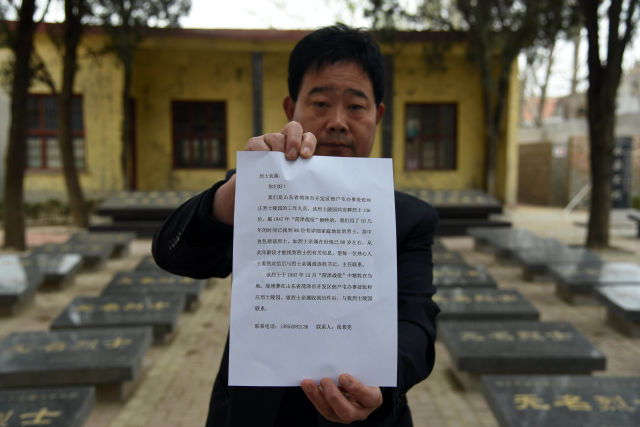 2008年清明節(jié)前,時任張和莊村黨支部書記的張景憲帶領黨員打掃陵園。眼前的景象讓他感到十分心酸?!斑@些烈士讓我想起了自己犧牲的戰(zhàn)友,作為一名黨員也是退伍老兵,我有責任有義務幫他們找到家?!睆哪菚r起,張景憲決心為這些無名烈士找到家鄉(xiāng)和親人,告慰他們的英靈。