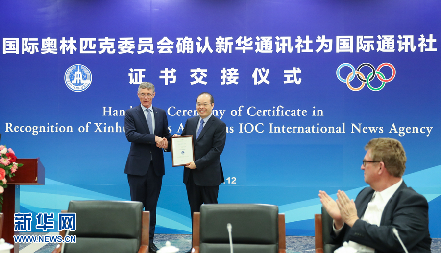 新華社接受國(guó)際奧委會(huì)國(guó)際通訊社證書(shū)