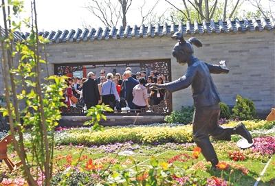 老北京四合院里常種的玉蘭、海棠、柿子樹、石榴樹將游客帶入老舍先生筆下“天棚魚缸石榴樹,老爺肥狗胖丫頭”的畫境中。隨著游客游覽步伐的移動,北京園的景色也在變化,每一個花窗外便是一幅景色。比如說,第二個窗景展示的便是新優(yōu)品種宿根花卉,牡丹、芍藥、月季、菊花、荷花,游客可在這里一一欣賞。