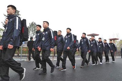 在世園會內(nèi)列隊“巡邏”的快遞小哥??爝f公司世園會站點供圖