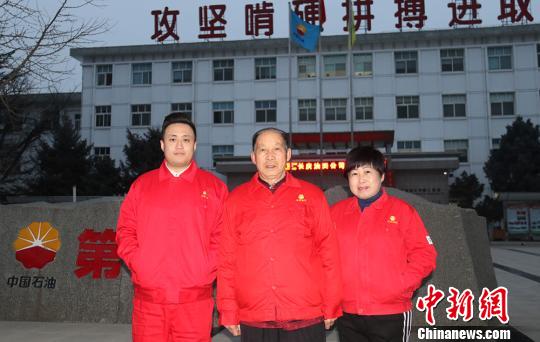 長(zhǎng)慶油田三代人扎根西北,共同見(jiàn)證著油田的數(shù)載發(fā)展。(中:芮執(zhí)甲 左:藺鼎讀 右:芮軍紅) 張鵬飛 攝