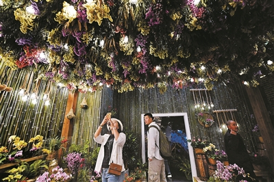 從北京世園會(huì)4號(hào)門進(jìn)入,即可體驗(yàn)“東線”游覽線路,涵蓋生活體驗(yàn)館、世界園藝展示區(qū)、國際館等主要場館和景區(qū)。昨天下午,北青報(bào)記者來到位于北京世園會(huì)東北部區(qū)域的生活體驗(yàn)館。剛一進(jìn)門,眼前就浮現(xiàn)出一條“之”字形花田步道,參觀者可以自一樓沿坡道徐徐漫步至二樓,欣賞沿途不同主題的植物。步道兩側(cè)栽種著水仙、蝴蝶蘭、菊花等植物,還散落著不少用生活用品裝點(diǎn)的園藝小品,如小鞋子、小草帽、小木箱等?!拔覀兺ㄟ^這樣的布景方式,既體現(xiàn)綠色環(huán)保的生活理念,也是力求將園藝融入生活,體現(xiàn)‘愛園藝、愛生活’的美好主題?!鄙铙w驗(yàn)館館長助理樊川介紹說。