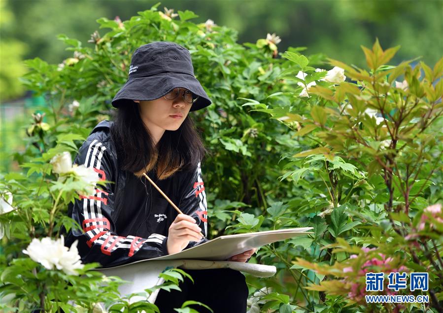 寫生愛好者在洛陽國家牡丹園內(nèi)寫生(4月24日攝)。新華社記者 李嘉南 攝