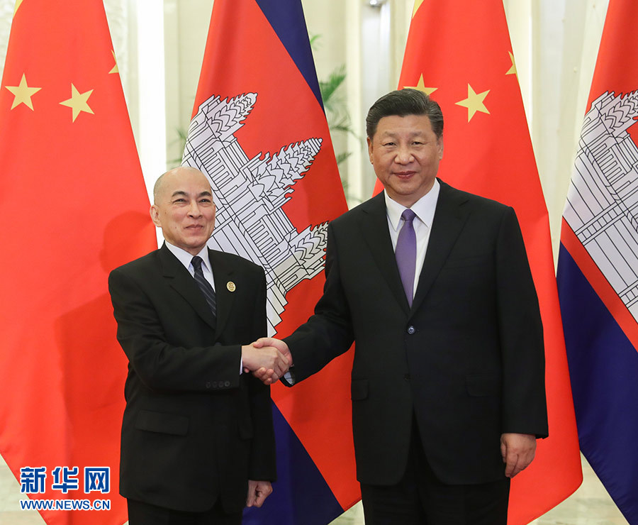 5月14日,國(guó)家主席習(xí)近平在北京人民大會(huì)堂會(huì)見(jiàn)來(lái)華出席亞洲文明對(duì)話大會(huì)的柬埔寨國(guó)王西哈莫尼。 新華社記者 姚大偉 攝