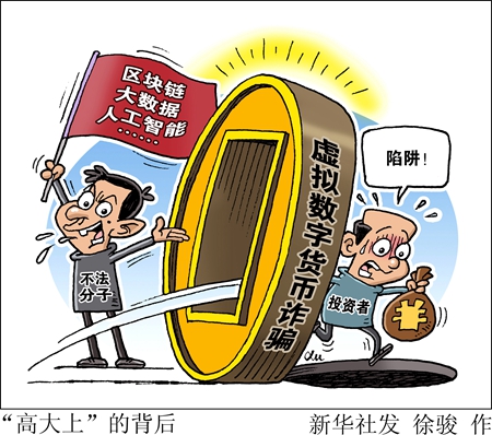 虛擬數字貨幣、區(qū)塊鏈、大數據、人工智能……近幾年流行起來的“高大上”新名詞,被一些不法分子“盯上”,包裝成了一個個騙局。湖南衡陽公安機關日前破獲一起以虛擬數字貨幣為幌子的網絡詐騙案,涉案金額達3億余元,截至目前已有23人被刑事拘留。虛擬數字貨幣詐騙案的背后,隱藏著不少騙人的“套路”,應引起警惕。有專家建議,對于這類新興金融投資領域,還應加強誠信建設和規(guī)則制定。