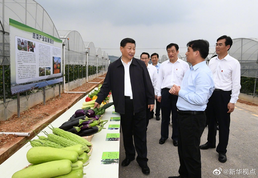 20日下午,習(xí)近平總書(shū)記來(lái)到江西省于都縣梓山富硒蔬菜產(chǎn)業(yè)園考察調(diào)研。產(chǎn)業(yè)園以“龍頭企業(yè)+合作社+農(nóng)戶和貧困戶”發(fā)展模式,帶動(dòng)了當(dāng)?shù)卮迕衩撠氈赂???吹娇倳?shū)記來(lái)了,正在大棚里勞作的鄉(xiāng)親們激動(dòng)地說(shuō):“感謝黨的好政策,讓我們過(guò)上了幸福生活!”習(xí)近平對(duì)鄉(xiāng)親們說(shuō):“共產(chǎn)黨就是為人民群眾謀幸福的,黨中央想的就是千方百計(jì)讓老百姓過(guò)上好日子。芝麻開(kāi)花節(jié)節(jié)高,今后日子會(huì)更好!”(文字:張曉松 攝影:謝環(huán)馳、鞠鵬)