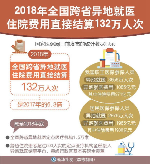 2018年全國跨省異地就醫(yī)直接結(jié)算132萬人次