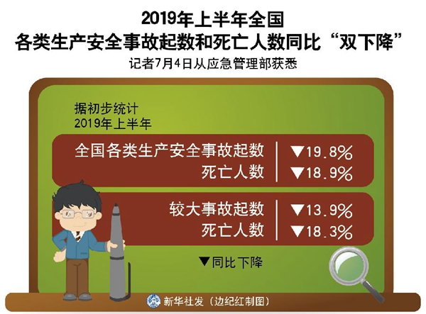 上半年全國各類生產(chǎn)安全事故起數(shù)和死亡人數(shù)同比“雙下降”