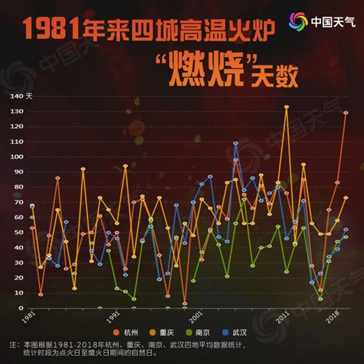 從1981年至2018年的平均數(shù)據(jù)統(tǒng)計來看,北方火爐“點”得早“熄”得也早,相比之下,江南華南火爐耐力更足,“燃燒”時間更長,往往9月才最后“熄火”。