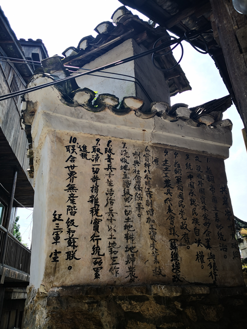 查閱近年來關(guān)于紅軍的報道,我發(fā)現(xiàn)在湖北、陜西等地,都有紅軍留下的《十大政綱》遺跡,有用毛筆寫的,也有用刀工刻在石板上的。在白色恐怖的日子里,各地群眾冒著生命危險,用各種方式保護《十大政綱》留存下來,憑的是對紅軍的感情和對未來美好社會的信念。