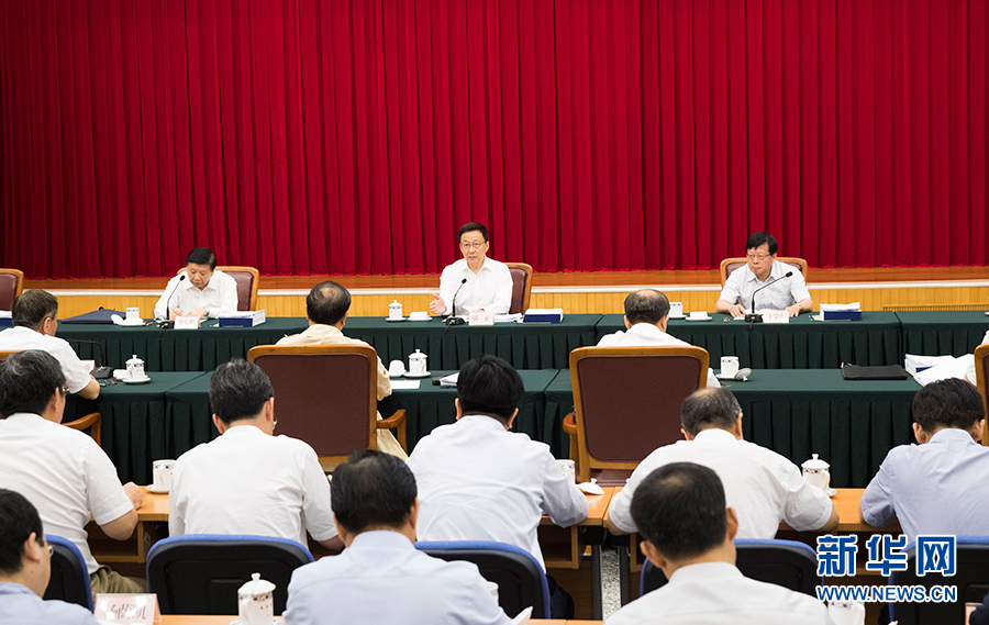 7月26日,中共中央政治局常委、國務(wù)院副總理韓正在國家發(fā)展改革委調(diào)研指導“不忘初心、牢記使命”主題教育,主持召開座談會,聽取國家發(fā)展改革委開展主題教育的情況匯報并講話。 新華社記者 黃敬文 攝