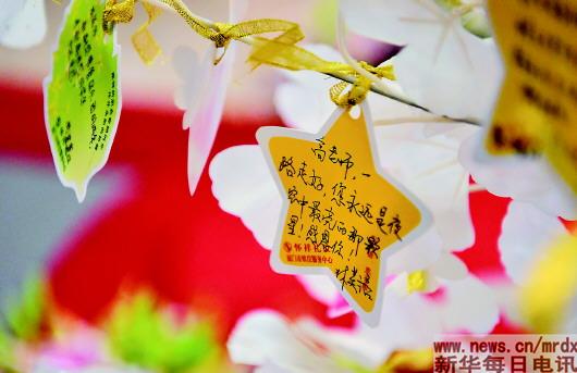 7月21日,廈門六中音樂老師高至凡曾教過的廈門六中合唱團學(xué)生追念老師的留言。新華社記者魏培全攝