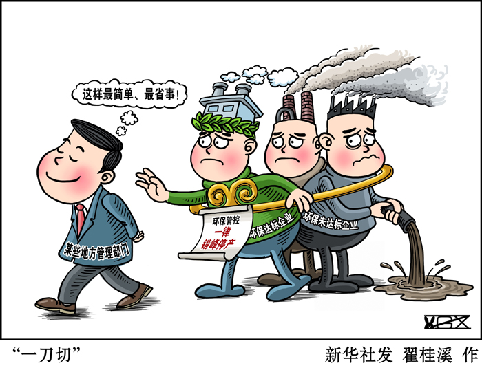 值得注意的是,有些地方“一刀切”政策開始搞移花接木。中部多家企業(yè)的相關(guān)負(fù)責(zé)人反映,遇到上級部門前來檢查、督查時(shí),地方政府擔(dān)心指標(biāo)不符合要求,就讓企業(yè)一律采取停產(chǎn)應(yīng)對??稍趯ν獍l(fā)布消息時(shí),卻說成“企業(yè)停產(chǎn)檢修”“企業(yè)升級改造設(shè)備”,本是地方的“一刀切”要求,卻搖身一變成為企業(yè)的“自行選擇”。