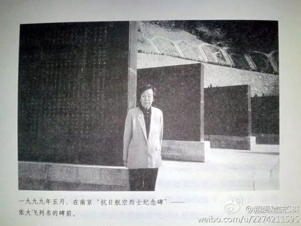 ↑南京抗日航空烈士公墓石碑上刻有張大飛的名字。