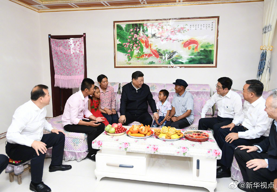 富民新村地處甘肅省古浪縣黃花灘生態(tài)移民區(qū),習(xí)近平總書記21日上午來到這里,看望從山區(qū)生態(tài)移民易地扶貧搬遷的鄉(xiāng)親們。他走進(jìn)村民李應(yīng)川家,小院潔凈、住房敞亮、廚衛(wèi)設(shè)施齊全。在客廳坐下來,李老漢拿出一張搬遷前的老照片給總書記看,曾經(jīng)居住的土坯房同窗明幾凈的新居有天壤之別。習(xí)近平對(duì)這里群眾生產(chǎn)生活條件發(fā)生的巨大變化感到十分欣慰,李老漢連連感嘆現(xiàn)在日子太幸福了。習(xí)近平強(qiáng)調(diào),你們高興我們也高興,共產(chǎn)黨就是為人民服務(wù)的,就是為老百姓辦事的,讓老百姓生活更幸福就是共產(chǎn)黨的事業(yè)。(文字記者:張曉松、朱基釵 攝影記者:鞠鵬、謝環(huán)馳)