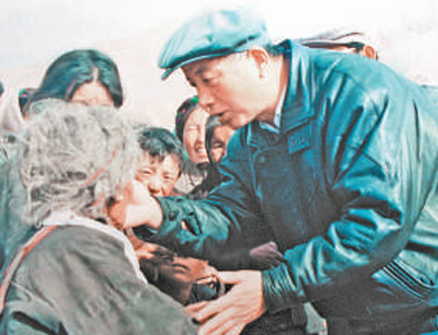 在西藏工作,孔繁森深深愛上了這片壯麗、神奇的高原,還有這里的人民。1988年,山東再次選派進(jìn)藏干部,孔繁森第二次赴藏工作。進(jìn)藏后,孔繁森擔(dān)任拉薩市副市長(zhǎng),分管文教、衛(wèi)生和民政工作。到任僅4個(gè)月,他就跑遍了全市8個(gè)縣區(qū)所有的公辦學(xué)校和一半以上的村辦小學(xué),為發(fā)展少數(shù)民族的教育事業(yè)奔波操勞;為結(jié)束尼木縣續(xù)邁鄉(xiāng)等3個(gè)鄉(xiāng)群眾易患大骨節(jié)病的歷史,他多次爬到海拔近5000米的山頂水源處采集水樣,幫群眾解決飲水問(wèn)題;在了解農(nóng)牧區(qū)缺醫(yī)少藥的情況后,他每次下鄉(xiāng)時(shí)都特地帶一個(gè)醫(yī)療箱,工作之余就給農(nóng)牧民群眾認(rèn)真地聽診、把脈、打針……