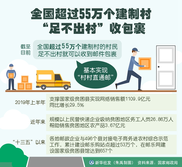 據(jù)統(tǒng)計(jì),今年上半年支撐國家級貧困縣實(shí)現(xiàn)網(wǎng)絡(luò)銷售額1109.9億元,同比增長29.5%。近年來,規(guī)模以上民營快遞企業(yè)吸納貧困地區(qū)務(wù)工人員26.86萬人,幫助銷售貧困地區(qū)農(nóng)產(chǎn)品3.67億元?!笆濉币詠?,各地郵政企業(yè)與496個(gè)縣對接電子商務(wù)進(jìn)農(nóng)村綜合示范工作,推動(dòng)村級郵樂購站點(diǎn)完善布局,不斷向貧困地區(qū)村級延伸,幫扶貧困地區(qū)加強(qiáng)城鄉(xiāng)雙向流通,累計(jì)建設(shè)郵樂購站點(diǎn)超過53萬個(gè),在郵樂網(wǎng)建設(shè)國家級貧困縣館達(dá)到657個(gè)。