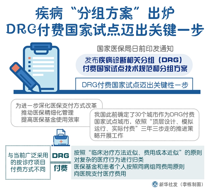 新華社北京10月24日電(記者張泉)國(guó)家醫(yī)保局日前印發(fā)通知,發(fā)布疾病診斷相關(guān)分組(DRG)付費(fèi)國(guó)家試點(diǎn)技術(shù)規(guī)范和分組方案,DRG付費(fèi)國(guó)家試點(diǎn)邁出關(guān)鍵性一步。