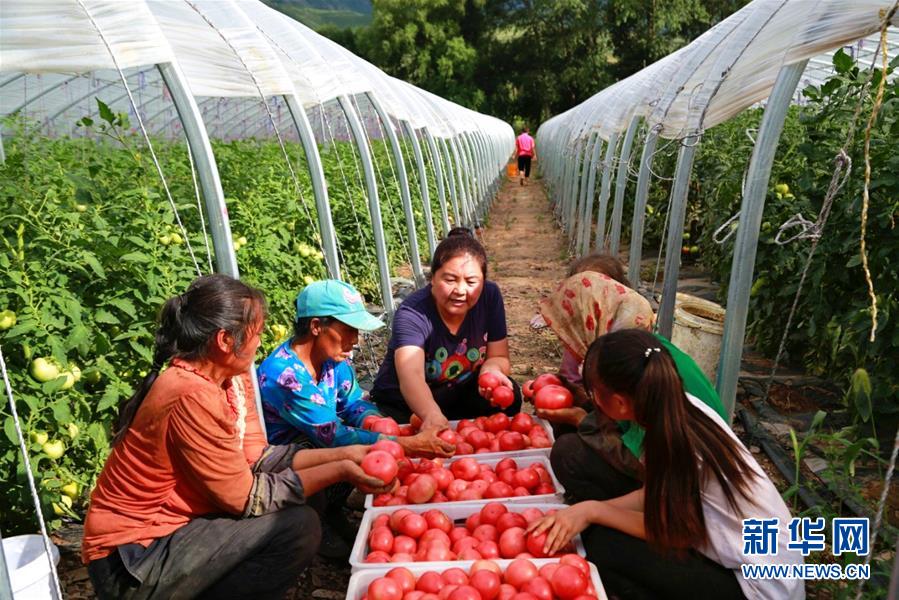 趙會(huì)杰在蔬菜大棚了解西紅柿的生長(zhǎng)情況(資料照片)。 新華社發(fā)(李國(guó)志 攝)