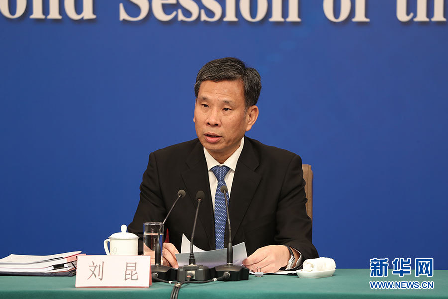 十三屆全國人大二次會議新聞中心3月7日9時在梅地亞中心新聞發(fā)布廳舉行記者會,邀請財政部部長劉昆,副部長程麗華、劉偉就“財稅改革和財政工作”相關(guān)問題回答中外記者提問。圖為劉昆回答記者提問。新華網(wǎng)/中國政府網(wǎng) 陳杰 攝