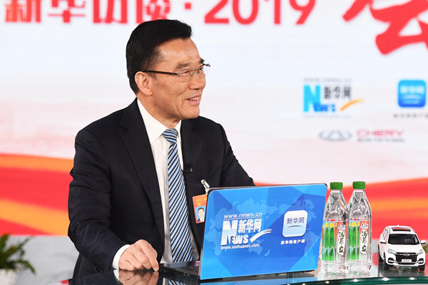 3月8日,全國(guó)人大代表、明陽(yáng)智慧能源董事長(zhǎng)張傳衛(wèi)做客新華網(wǎng)。新華網(wǎng) 李相博 攝
