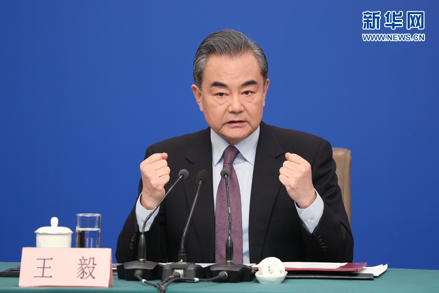 十三屆全國(guó)人大二次會(huì)議新聞中心3月8日10時(shí)在梅地亞中心新聞發(fā)布廳舉行記者會(huì),邀請(qǐng)國(guó)務(wù)委員兼外交部長(zhǎng)王毅就“中國(guó)外交政策和對(duì)外關(guān)系”相關(guān)問題回答中外記者提問。圖為王毅回答記者提問。新華網(wǎng)/中國(guó)政府網(wǎng) 陳杰 攝