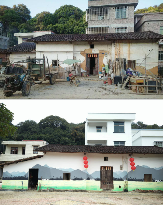 上圖為清遠市連樟村改造前的老房子,下圖為2018年12月11日拍攝清遠市連樟村改造后房屋新貌。新華社發(fā)