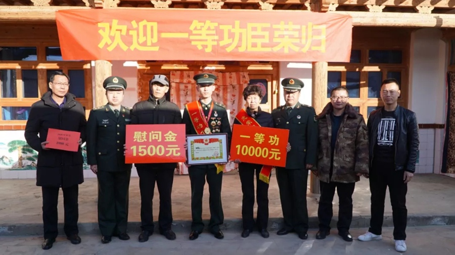 送喜報(bào)干部在一等功臣張德云家進(jìn)行慰問(wèn)