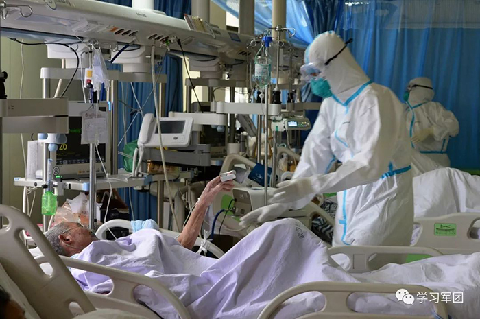 1月27日上午,海軍軍醫(yī)大學(xué)醫(yī)療隊(duì)醫(yī)護(hù)人員在漢口醫(yī)院重癥監(jiān)護(hù)室對(duì)新型冠狀病毒感染的肺炎患者進(jìn)行救治。醫(yī)護(hù)人員加強(qiáng)巡視,觀察輸液滴數(shù)。解放軍報(bào)記者范顯海攝