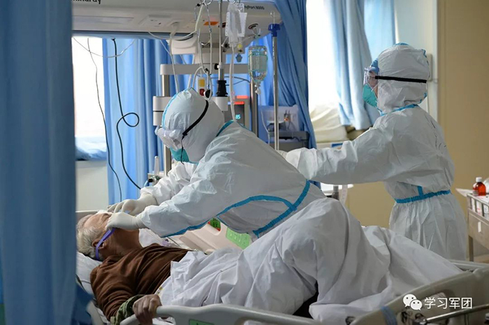 1月27日上午,海軍軍醫(yī)大學(xué)醫(yī)療隊(duì)醫(yī)護(hù)人員在漢口醫(yī)院重癥監(jiān)護(hù)室對(duì)新型冠狀病毒感染的肺炎患者進(jìn)行救治。醫(yī)護(hù)人員對(duì)患者進(jìn)行輸液護(hù)理。解放軍報(bào)記者范顯海攝