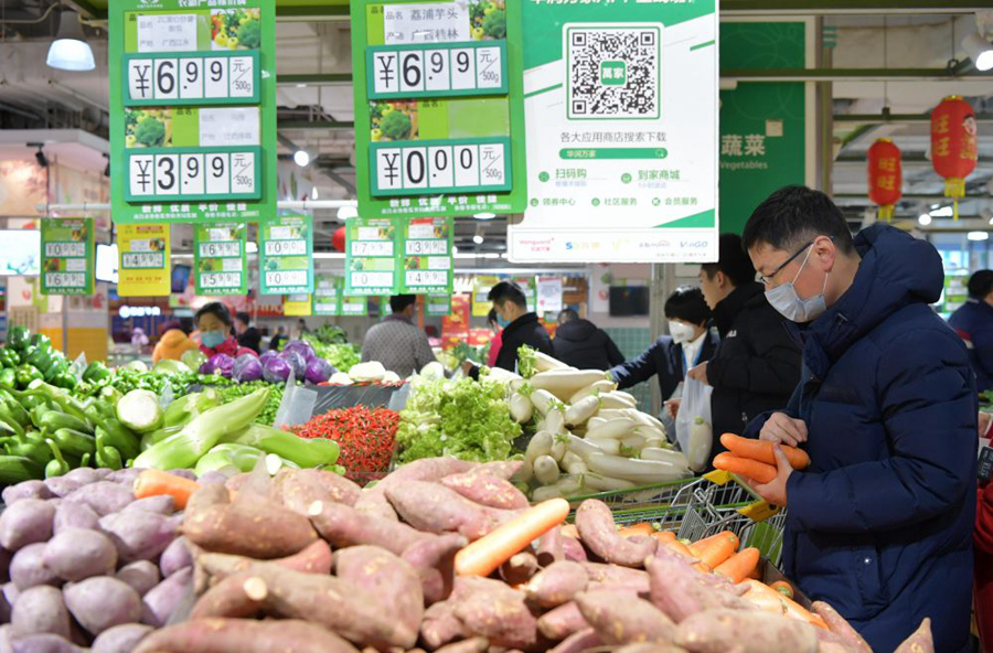 1月29日,市民在青島市一家大型超市內(nèi)采購蔬菜。新華社記者李紫恒攝