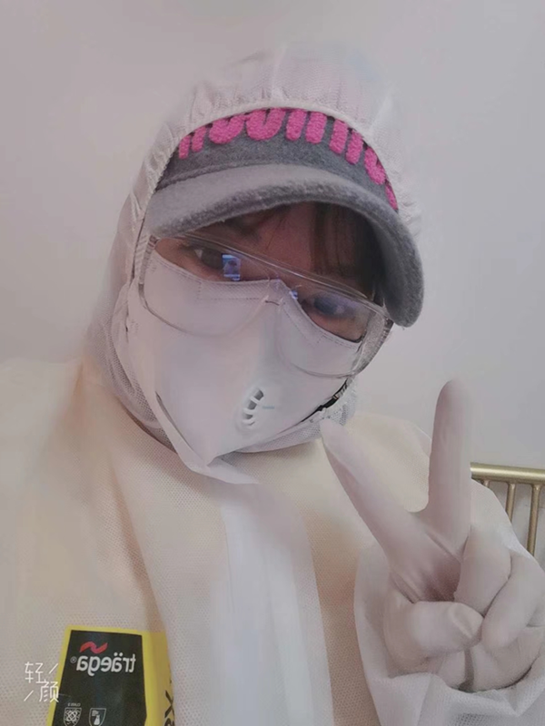我出去心理壓力也很大,所以我回來(lái)進(jìn)門之前,消毒工作從頭到腳,到鞋底都不放過(guò)。防護(hù)服那些在樓下脫下,拿個(gè)塑料袋裝起來(lái)丟到垃圾桶。站在門外噴消毒液,我老公拿著“槍”對(duì)著我噴,感覺(jué)我的呼吸道都被消毒了。