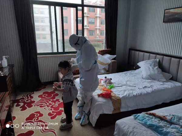 一大家子被隔離,兩個孩子不能丟在家里沒人管,這給安慶市迎江區(qū)疫情防控指揮部安置組出了道難題?!罢l來照顧已是密切接觸者的兩個年幼的孩子呢?”安慶市迎江區(qū)濱江街道黨工委書記趙明來告訴記者,大家商議之后,決定把兩個小家伙送到隔離醫(yī)學(xué)觀察點,由專業(yè)的醫(yī)護(hù)人員照顧。