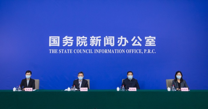 三位中央指導(dǎo)組成員出席國新辦發(fā)布會(huì)。新華社記者肖藝九攝。