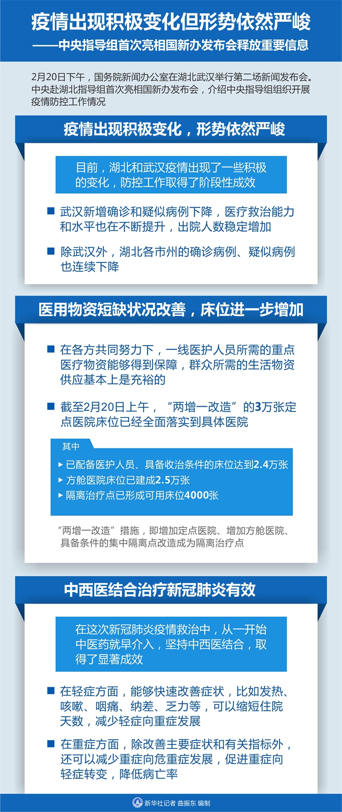新華社武漢2月20日電 題:疫情出現(xiàn)積極變化但形勢依然嚴峻——中央指導組首次亮相國新辦發(fā)布會釋放重要信息