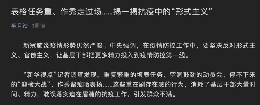 半月談記者在中東部省份調(diào)研發(fā)現(xiàn),許多地方明明視頻會議系統(tǒng)已經(jīng)建成,在此非常時期仍要求基層有大事必須進(jìn)辦公室開會;大數(shù)據(jù)已經(jīng)有了相當(dāng)?shù)姆e累,卻“秘而不宣”“藏而不露”,仍要求基層手工填表留痕。
