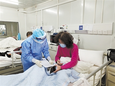 按照“紅區(qū)”病房的要求,非醫(yī)務(wù)人員不得進(jìn)入,黃舒和隊(duì)友需身兼數(shù)職,除了做日常治療和護(hù)理外,她還要負(fù)責(zé)打掃衛(wèi)生、病區(qū)消毒、照顧患者飲食起居等工作?!凹t區(qū)”老年病人占據(jù)大比例,由于病人病情較重,黃舒和戰(zhàn)友需要幫他們喂飯喂水、接大小便、洗漱洗手等,工作量和辛苦程度可想而知。