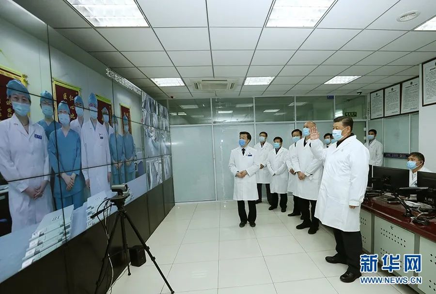 2月10日,習近平來到首都醫(yī)科大學附屬北京地壇醫(yī)院門診樓一層運行監(jiān)控中心,通過監(jiān)控畫面察看患者住院診療情況,并視頻連線正在病房值班的醫(yī)務人員。