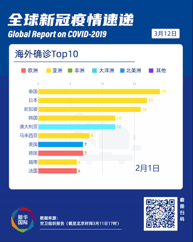這是一組令人憂心的數(shù)字:過去兩周,中國以外新冠肺炎確診病例數(shù)增長了13倍,受影響國家和地區(qū)數(shù)增加了兩倍。