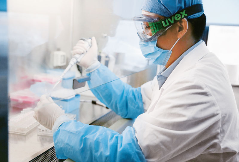 新冠肺炎疫情發(fā)生后,我國科研人員用了不到一周時間就確定了新冠病毒的全基因組序列,分離得到病毒毒株并向世界發(fā)布共享。我國在公共衛(wèi)生和醫(yī)療健康領(lǐng)域多年積淀的科研能力、平臺條件、人才儲備和技術(shù)產(chǎn)品,使我們有信心有能力最終戰(zhàn)勝這次新冠肺炎疫情,有力維護國家戰(zhàn)略安全。圖為科研人員在實驗室進行病毒核酸提取。軍事醫(yī)學研究院供圖