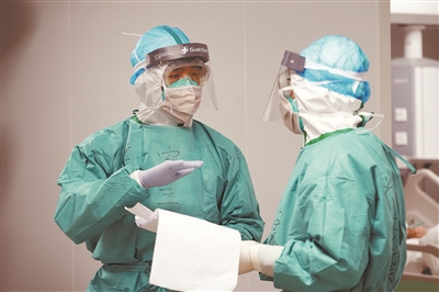 有的護(hù)士缺水缺氧暈倒過,可休息一會(huì)兒起來后繼續(xù)戰(zhàn)斗;有的護(hù)士從不敢坐凳子,因長(zhǎng)時(shí)間穿戴尿不濕,一坐下就會(huì)滲濕防護(hù)服;有的護(hù)士還哭過,不是因?yàn)榭嗪屠?,而是被病人溫暖的話語(yǔ)感動(dòng)得落淚。